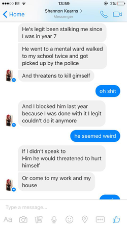 Kearns stated that Hong Shen has been stalking her for several years and explains that he is extremely obsessed with her to the point where he needed to go to a mental ward.