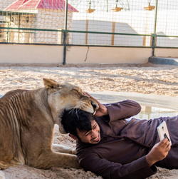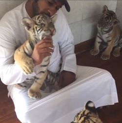 Humaid Abdalla AlBuQaish is an Instagram personality. [0]He is known for sharing extravagant pictures and videos with his followers. This particularly includes moments with his big cats, including cheetahs, tigers, and lions. [1] [3] [5]Some of his content also includes photos of lions on top or on the side of his fancy cars, which include a Mercedes Benz and a Lamborghini. [8]