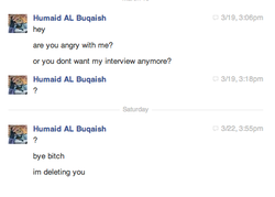 10 days later, on March 19, 2014, Humaid contacted Meher and asked her if she was angry with him.