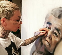 In 2015, she launched another project, Human Canvas which allowed people to use her body as a medium, by sending her names and messages that she tattooed onto her body to create a one of a kind original art piece that could not be sold in a gallery or recreated. It is unfinished and has 3,000 strangers' stories, including marriage proposals, love letters, and remembrances of lost loved ones. It is a long term project only exhibited every 5 years where the artist will stand naked in a gallery for a month so that people can watch as the art ages and eventually fades away.