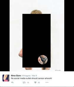 Illma Gore (Ashley Gore) (born 2 March 1992) is Australian-American Artist from San Francisco Bay Area who now lives in Los Angeles. She holds a Diploma of Interactive Digital Media from Australia. She refers to herself as a gender fluid feminist performance artist focused on work that reflects political topics and the physical self and the significance and importance placed on the human body.