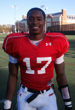 Isaac Goins (raised in San Pablo, California) is an American student and football player. He plays for Maryland Terrapins and is affiliated with the National Collegiate Athletic Association. [-1]