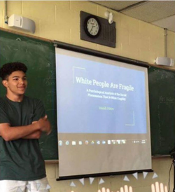 In late May, 2017, a photo of Isaiah which was taken when he was a Junior in high school began trending in a Facebook group called "Rebel Alliance", which confused a number of the members who felt offended about what his project may entail. [undefined] The title of his presentation for his Advanced Placement Psychology class is: "White People are Fragile". [undefined] To clear up the confusion, Isaiah took to his own Facebook to properly summarize a bit about his project and the concept of "White Fragility" in Psychology.