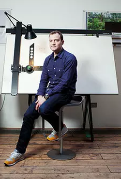 Jake is the son of famed entrepreneur and industrial designer James Dyson. Growing up, seeing his father work strenuously late nights made him understand how tough the industrial design world can be. He attended Central Saint Martins and graduated with a degree in industrial design. I He graduated in 1994 and began work designing retail interiors, shops, cafes and clubs. He then set up his own workshop, purchasing a mill and a lathe, and started experimenting and developing products. His studio/workshop, Jake Dyson Products, is based in Clerkenwell in Central London. He established his own design studio in London and created the Motorlight Floor Lamp.