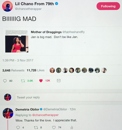 Citation Linkywqaugeunhowzrcj.public.blob.vercel-storage.comChance the Rapper Tweeting about Demetria Obilor.
