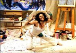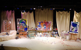 The experimental theater performance features Jann telling her story on a set that is a painter's studio.