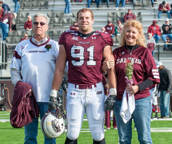Jason Seaman in his Southern Illinois Salukis Football Team uniform with his parents