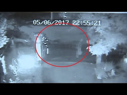Surveillance video of Mann evading police after exposing himself