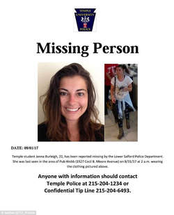 Jenna Burleigh was an American college student at Temple University. [undefined] [1] [undefined]