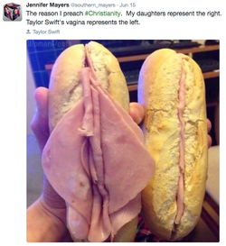 In July 2016, Jennifer's tweet comparing a sloppy ham sandwich to Taylor Swift's vagina went viral on the internet.