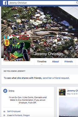 Jeremy Joseph Christian is an American ex-convict residing in Portland, Oregon.