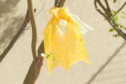 The school has lined the route from his house to the school with yellow ribbons and have decorated the front of the school.