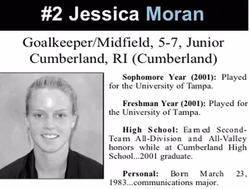 Moran is a graduate of Cumberland High School, class of 2001, where she was second team all-division soccer player. She played as a goalie and in midfield.