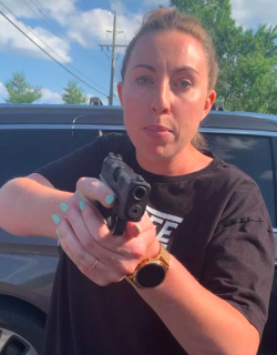 Jillian Wuestenberg then exited the car and brandished a gun, pointing it at Hill several times.
