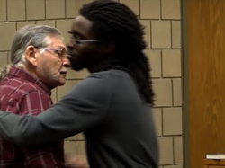 In December 2016, months after the attack, McGraw and Rakeem Jones hug each other in court.
