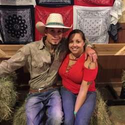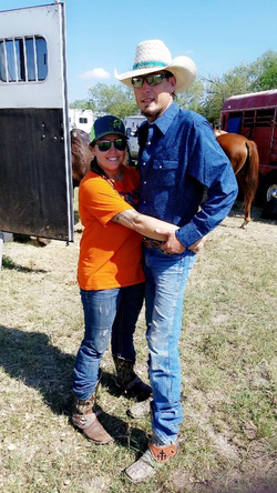 Photo of Johnnie and his girlfriend Summer Caddel inside a barn.