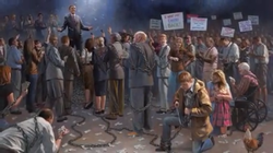 McNaughton's painting Liberalism is a Disease features prominent Democrat politicians and media personalities.