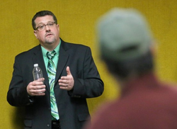 Pollard giving a talk.