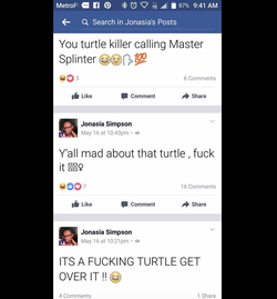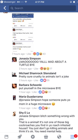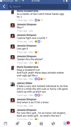In her interactions with the people of Facebook, she states: "Ya'll Mad over a fucking turtle.