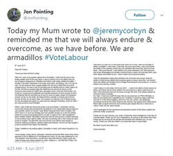 Jon is a supporter of Corbyn and the Labour Party UK. [17]