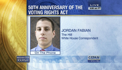 Jordan Fabian is White House correspondent for The Hill and is a member of the White House press corps. [1]