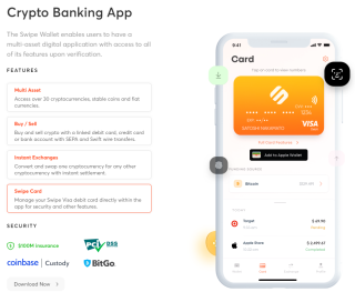Swipe is a multi-asset digital wallet and Visa Debit card platform designed to let users buy, sell and spend their cryptocurrencies. The Swipe platform enables users to spend cryptocurrencies in real time without having to manually convert the transactions prior.