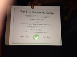 Joshua Beal earned his associate's degree in business administration in December 2015 from Ivy Tech Community College of Indiana and planned to enroll in Franklin University.