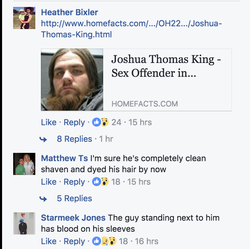 Joshua Thomas King (October 23rd,1987) is an American White nationalist who was an associate in the assault of Deandre Harris, a bystander during the Unite the Right rally.