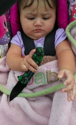A photo posted to Facebook also showed the baby holding a pocket knife with an open blade. [1] [undefined] [undefined]