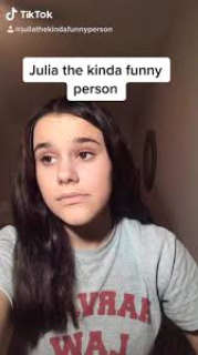 Julia the Kinda Funny Person (born June 4, 2004) is a social media star known for her funny videos on TikTok. She always uploads short videos of herself poking fun at or impersonating other TikTok Stars. Targets of hers included Caleb Finn, Zoe LaVerne, Emma Chamberlain and Daryna Popach, among others. She has earned over 6 million fans. [1]