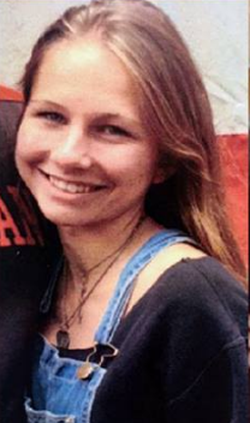 Police said Kaitlyn George is approximately 5’3” and approximately 121 pounds. She has hazel eyes and blonde hair. She was last seen wearing black leggings, a green long sleeved jacket, and bright colored socks (that are mid-calf level). She possibly had a black and white camping backpack and a green canvas bag with her. She also had a pink bag with her.