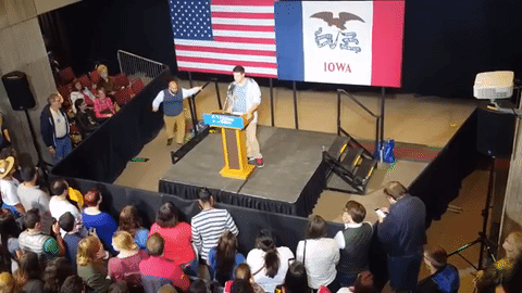 In 2017 Kaleb asked Steve King a question at a town hall meeting and used quotes to equate Representative King to a mass shooters.