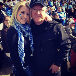 Photo of Katelyn Self and her father Roger Self at a sporting event