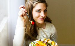 Kathy eating a salad