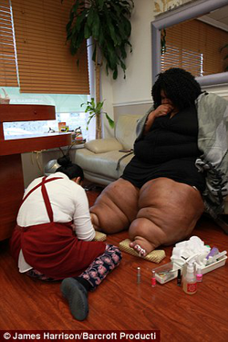 Katia Page is a woman from East Orange, New Jersey. [1] She suffers from a fat disorder called Lipedema - a chronic disorder that causes fatty tissue to accumulate in mass around the lower body, and has been getting treatment to help her health condition. The disease is also associated with lymphedema as she has also arrived with a stage 4 condition.