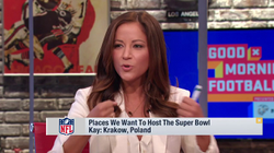 Kay Adams co-hosts the NFL Network show Good Morning Football with Nate Burleson, Peter Schrager and Kyle Brandt. The show covers Good Morning Football is broadcast live at the at the at 7 a.m - 10 a.m ET from the CBS Broadcast Center in New York City. The four discuss the day’s football topics, and are regularly visited by NFL players and coaches. Kay Adams also currently hosts DirecTV's Fantasy Zone.