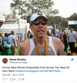 From 2013 to 2016, Agnew won first place titles at competitions at Across the Years in Camelback Ranch near Phoenix, Arizona. During the 2017 race, Agnew was caught that he wasn’t clocking in at a checkpoint halfway through the 1.0498-mile loop and instead he hid inside Portapotties until the right time for him to continue with the race. He would wait for seven minutes and then jumping out to cross the mat at the start/finish at the exact time he needed to keep his “mile pace” consistent. [9]