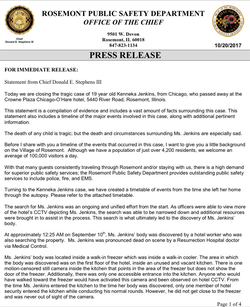 On October 20, 2017, the Rosemont Police Department closed the case of Kenneka Martin's death.