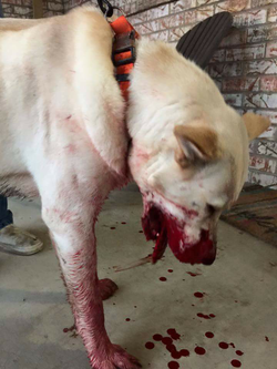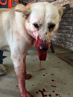 Photo of a dog with a bloodied snout that Kevin abused [1]