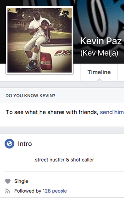 On August 4, 2017 Kevin Paz made a Facebook post stating, "Fk dog shows im tryin somethin else n seein what the money does. Green talks," implying that he makes money by dog fighting.