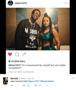 Ka’Oir allegedly dated rapper Yo Gotti around the same time she and Gucci Mane became exclusive. Their apparent relationship was the reason he and Gucci Mane were feuding at the time.[27]