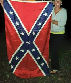 In photos she made public on Facebook, she is paying homage to the Confederate flag. One photo shows a Kimberly smiling posing with a Confederate flag. Another picture shows Keaton and his siblings posing with the U.S. flag and the Confederate flag.