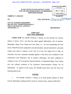 On August 25th, 2016, Bracey filed a lawsuit against Mayor of Jackson, Tony Yarber for sexual harassment, and for coercing her to have sex with him in order to keep her job. [0]