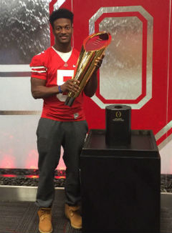 K.J. Hill (raised in North Little Rock, Arkansas) is an American student and football player. K.J. Hill plays for Ohio State Buckeyes and is affiliated with the National Collegiate Athletic Association. [666666]