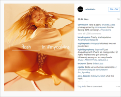 Klara modeled in advertisement showing an up skirt photo of Klara where her underwear is visible on Calvin Klein's Instagram account. The photo had the slogan "I flash in #mycalvins" and the caption "take a peek".
