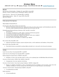 Kristan Ware attended Lander University in Greenwood for about a year before transferring to the University of South Carolina Columbia. In August 2013, she graduated with a Bachelor of Science in Marine Sciences with a Biological emphasis.
