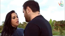 Gif of Kristen facebusting a sub with her feet.