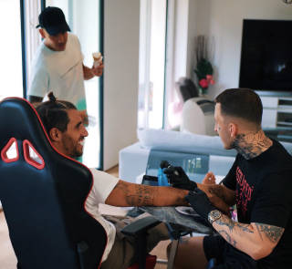 Kristian tattooing Javi Martínez before UEFA Champions League 2020