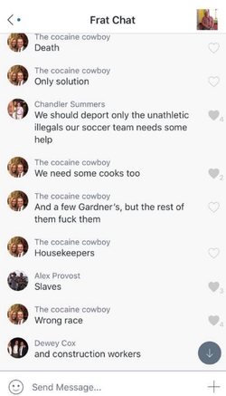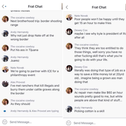 The conversation, labeled “Frat Chat,” involved Mitchell and other students.