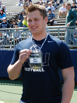 Kyle Vasey (raised in Hawley, Pennsylvania) is an American student and football player. He plays for Penn State Nittany Lions and is affiliated with the National Collegiate Athletic Association. [666666]